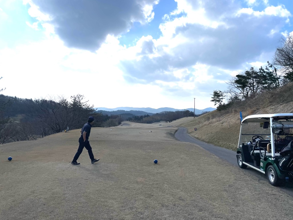 前回が最終戦のはずでしたが、天気予報で晴れの日が出たので、平井、高橋、金垣さんと今度こそ最後のラウンドをしてきました。朝の気温は0℃。風も山からかなり強く吹いていて体感は群馬並み寒さでした。前半はショットがまずまずなのにアプローチとパットが寄らず、特にアイアンがどう打ったらいいか分からなくなりました。8番のプッシュアウトOBで万事休す。