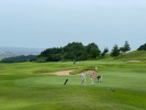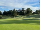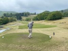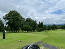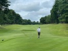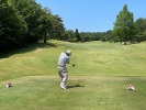 前日の練習場でグリップを変えてみて、朝の練習ではようやくアイアンが狙って打てるようになり今日は期待してスタートしたのですが、やっぱりそう簡単にはいきません。ショートホールは6Iが→に大きく曲がってオンできず。何とかパーオンすれば3パットばかり。ドライバーもイマイチ。不完全燃焼のハーフでした。後半はすべてボギー+2パットでスコア入力しました。 |
