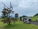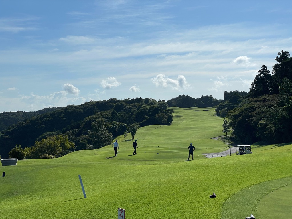 ゴルフASCの暑気払いを前に下田城CCでラウンド。気温35℃まで上がる予報なので、熱中症対策を万全に整えてスタートしましたが、Hさんは前半上がり3ホールで異常を感じたため午後のスタートは様子を見ることに。前回のラウンドから2週間空いたのでその間にグリップを変えて100y以内の練習をしてきたのが良かったようで、久しぶりのロースコアで回れました。前半はパーオン率が低い割にアプローチで寄せワンを撮れたのでパットが13。後半3パットが2回ありましたがアイアンの感触は良くなりました。ドライバーが狙って打てるようになれば夏本番で上がってくるかも。 |