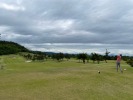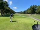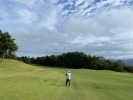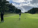 会社のお客様関係のミニコンペに欠員が出たのでキャディー代わりを兼ねて参加しました。天気は晴れ、台風の影響で風はやや強め、気温は18℃→22℃で動きやすい気候になりました。ドライバーが安定しない状況は変わりませんが、南コースでは4ホールでパーがとれもう少しのところでした。東コースは土曜日にも回るので自信がつくような内容を期待してスタートしたのですが、最後までドライバーが安定せず、+3が3回。パーを3回とったのに50たたき。残念な結果でした。とにかくフェアウェイキープできるようにしたいです。 |