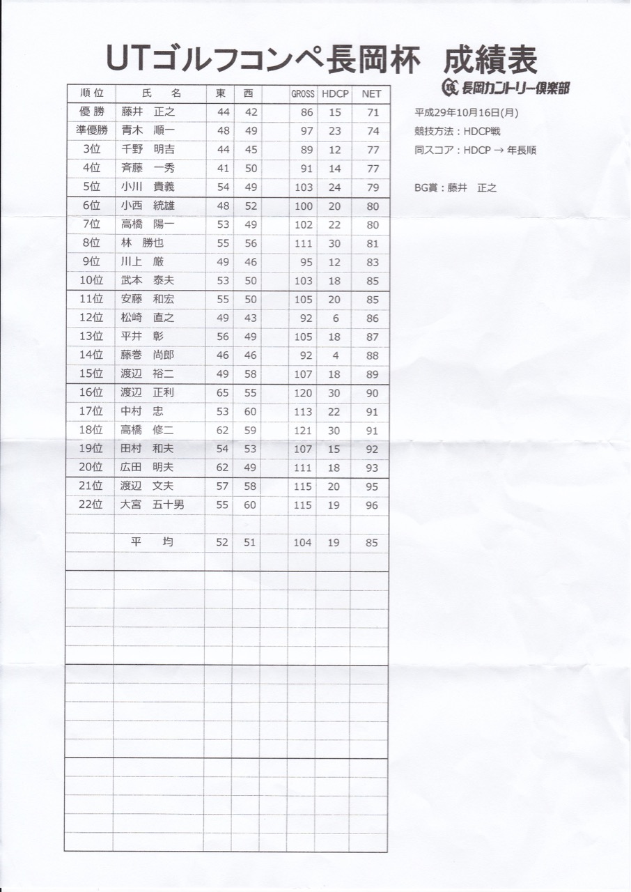| 武本 | 5 | 7 | 4 | 6 | 3 | 6 | 7 | 6 | 6 | 50 | 103 |